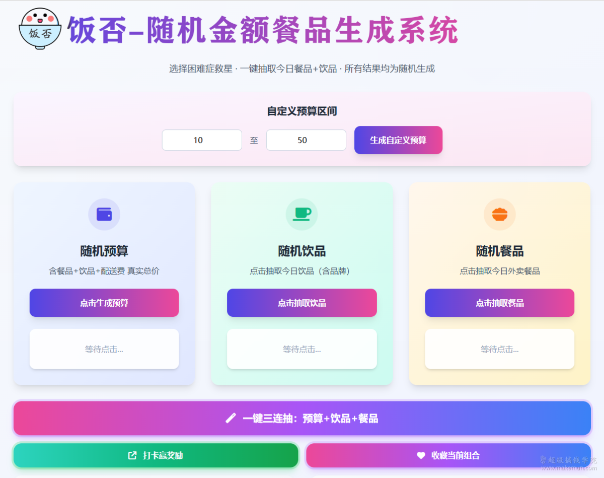 选择困难症救星 · 一键抽取今日餐品+饮品 · 所有结果均为随机生成