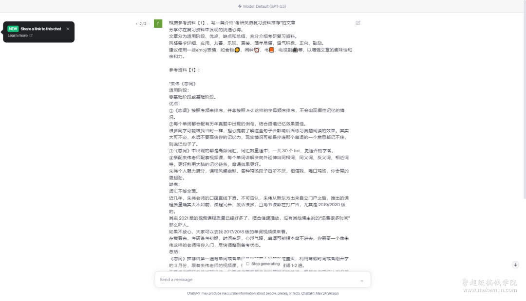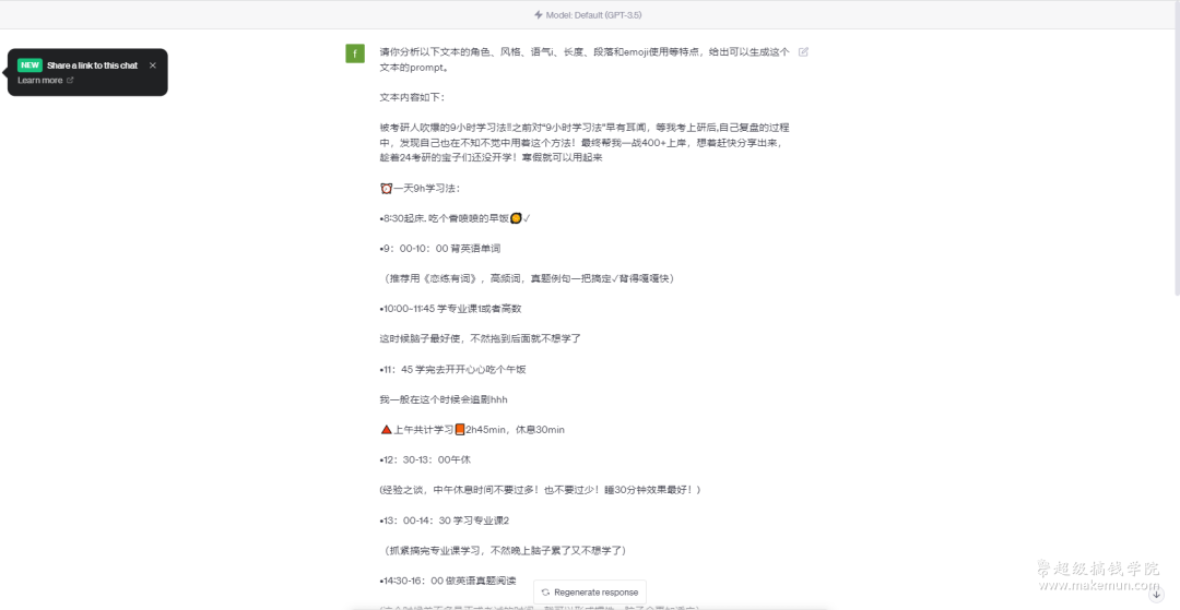 这一步你会发现,虽然ChatGPT添加了emoji表情,但是输出的内容和刚才的略有差别。
