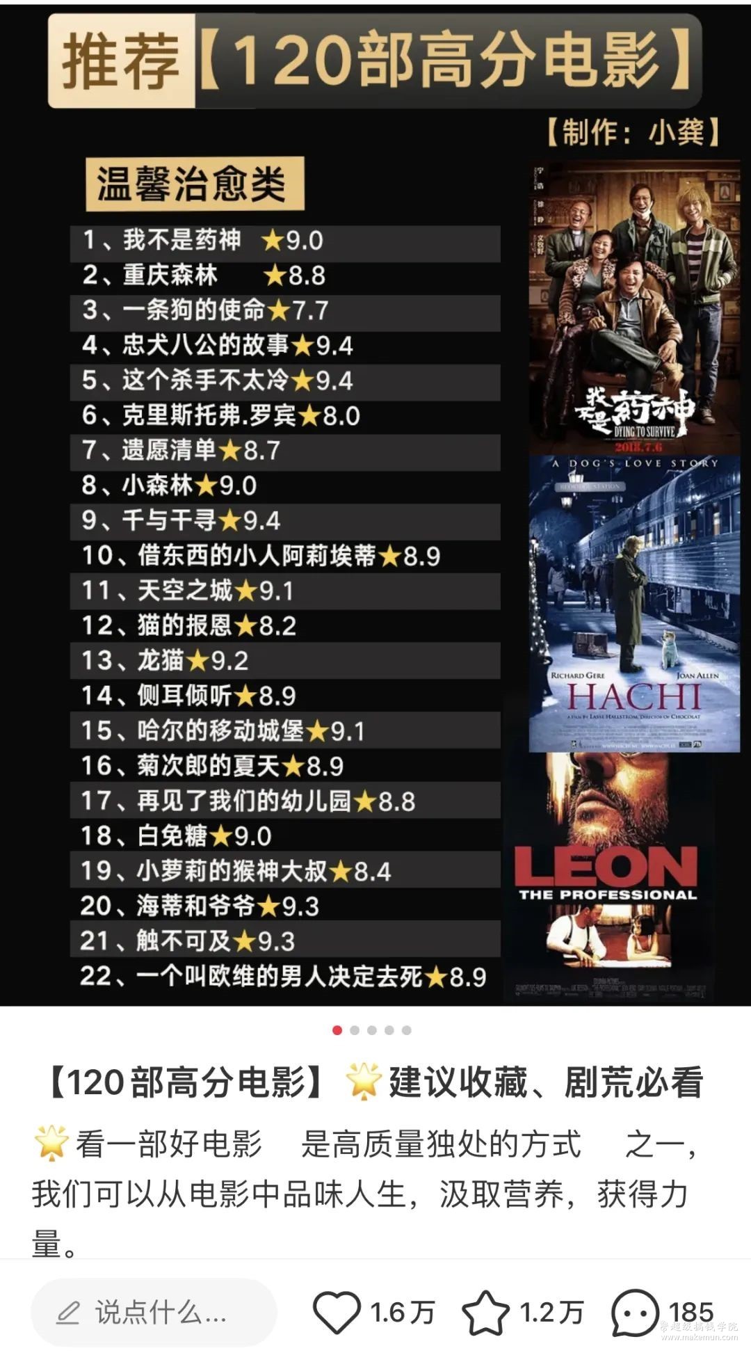 比如上面这篇笔记,通过列举120部高分电影,就直接获得了1.6w的赞同。