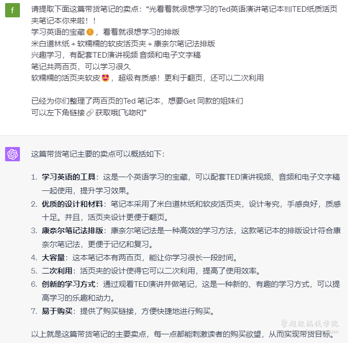 我们可以把文案提取出来,复制给ChatGPT来提取卖点:
