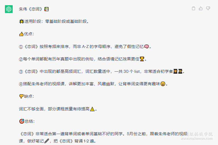 词汇不够全面,部分课程质量有待提高。