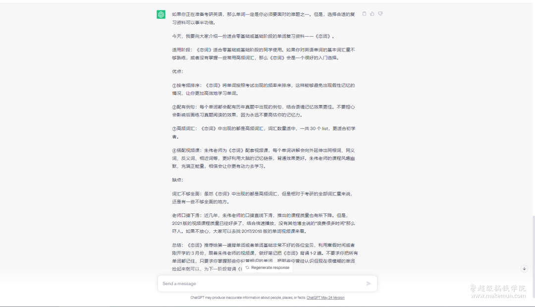 我们可以发现,ChatGPT没有完全按照我们的要求输出内容。